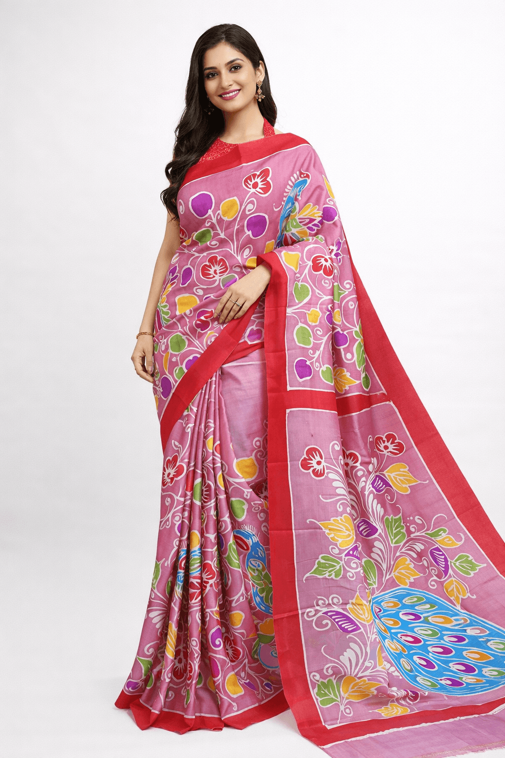Introducing the Bishnupuri Batik Silk Saree, a masterpiece of exquisite handcrafted elegance that will elevate your style for every occasion. This saree is a true embodiment of artistry and craftsmanship, meticulously created by skilled artisans to bring you a piece of wearable art that is truly unique.