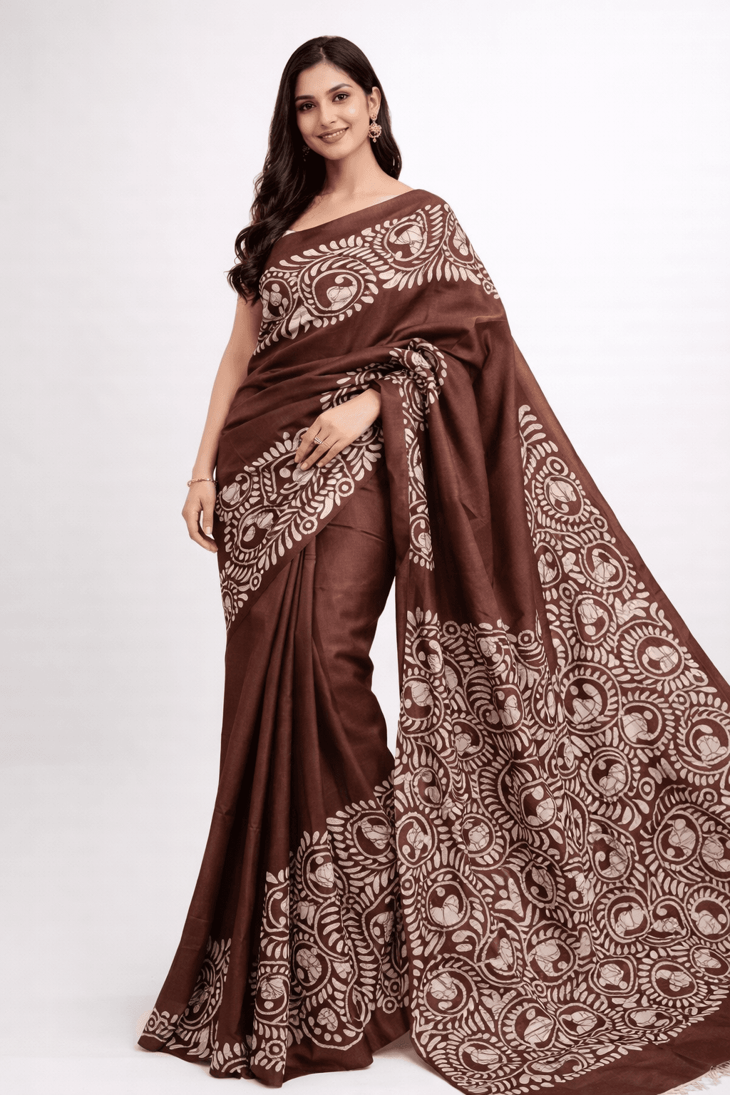 Introducing our exquisite Handcrafted Pure Silk Batik Saree, a masterpiece that embodies elegance, tradition, and artistry. Each saree is meticulously crafted by skilled artisans, ensuring a timeless piece that will captivate hearts and turn heads.